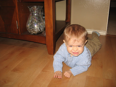 I have been expecting him to start crawling around 9 months because that is when his brother crawled. Well he is about a week short of 9 months so just about what I expected. It is still very exciting to see him do this. Although I am worried because he is going to be harder to keep track of.